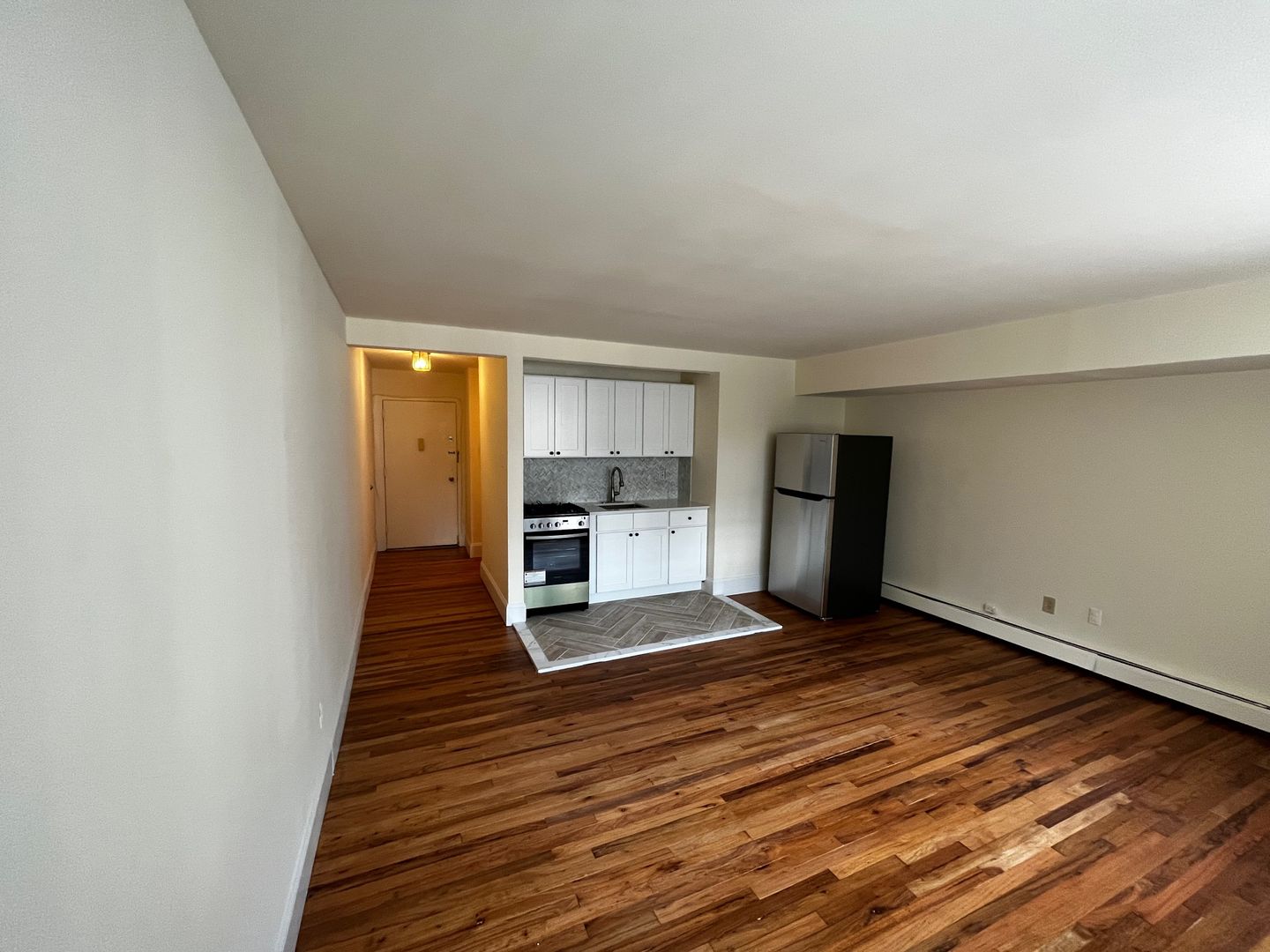 But the beauty doesn't stop there! The studio boasts gorgeous hardwood flooring, providing a warm and inviting atmosphere throughout. Its timeless appeal complements any interior design style, while its durability ensures years of easy maintenance and enduring beauty.